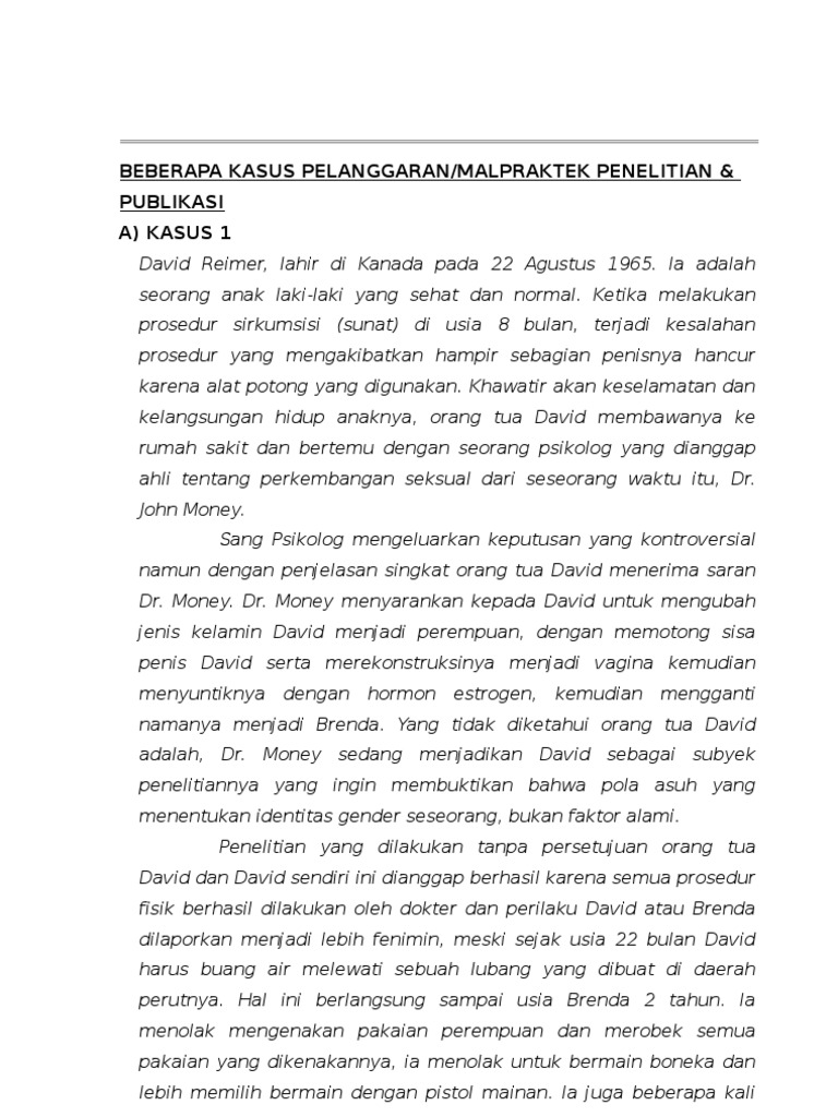 6 Contoh Pelanggaran Ringan Kode Etik Psikologi merupakan hal yang dianggap sebagai bentuk ketidakdisiplinan psikolog dalam memberikan pelayanan terhadap pasien apa sajakahhal tersebut selengkapnya dalam artikel berikut ini. Kasus mengenai Phineas Gage Kitty Genovese Kasus Bocah Aveyron Kasus David Reimer dan lain-lain. MAKALAH PELANGGARAN KODE ETIK_Della Feyza Alevia_2007010184_Psikologi 1Edocx - MAKALAH KODE ETIK u201cPELANGGARAN PASAL KODE ETIK PSIKOLOG HAREZ POSMAu201d A.