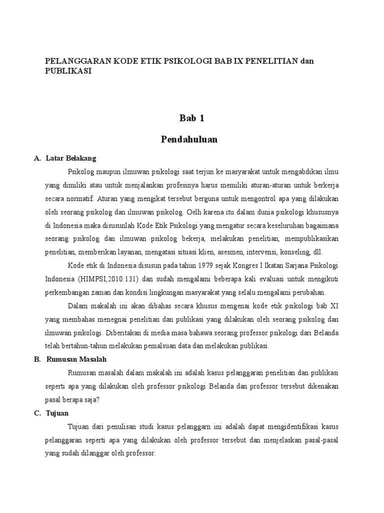 Pelanggaran Kode Etik Psikologi Bab Ix Penelitian Dan Publikasi