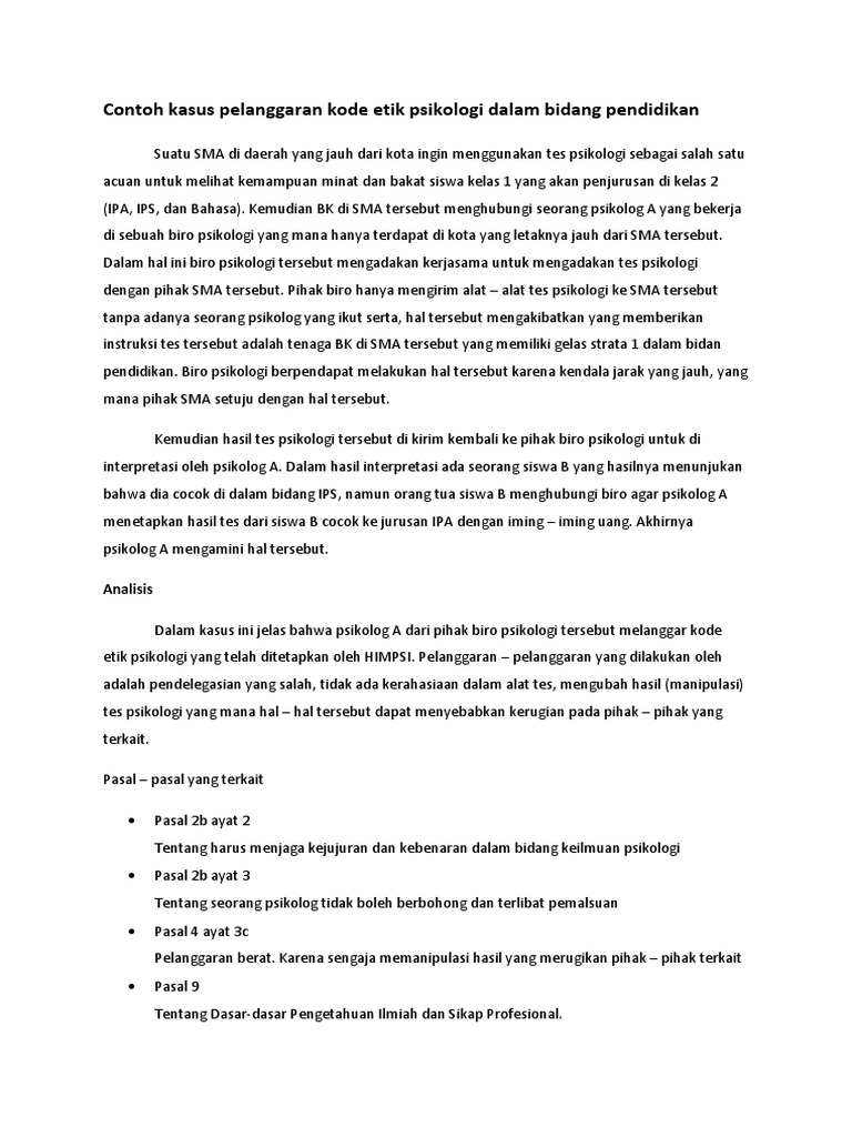 Contoh Kasus Pelanggaran Kode Etik Psikologi Dalam Bidang Pendidikan